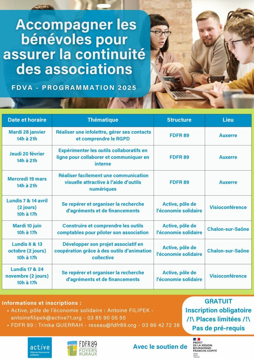 Objectifs : transmettre les connaissances nécessaires à la gestion administrative, financière, humaine et communicationnelles d’une association ! 🏆Public : toute association de Bourgogne Franche Comté
